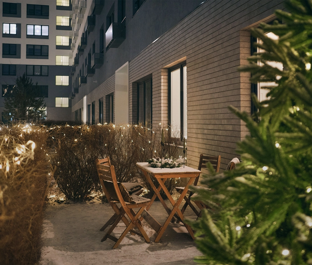 Двор в Бруснике закрыт от машин, посторонних людей и хорошо просматривается с любой точки. Дети играют и гуляют в безопасности. Во дворе растут высокие деревья и цветы. Нет ни одного темного угла.